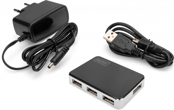 Hubben leveres med et USB A–mini‑kabel, så du kan tage den i brug med det samme. Den aktive konstruktion sikrer drift af flere enheder på én gang og stabil strømforsyning. Det kompakte kabinet sparer plads og er ideelt til både rejse og kontor.
