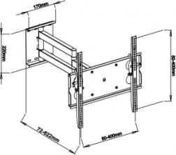 Den ledede arm gør det muligt at trække TV’et op til 62 cm ud fra væggen, så du nemt kan dreje skærmen til begge sider og indstille den ideelle position i ethvert rum.