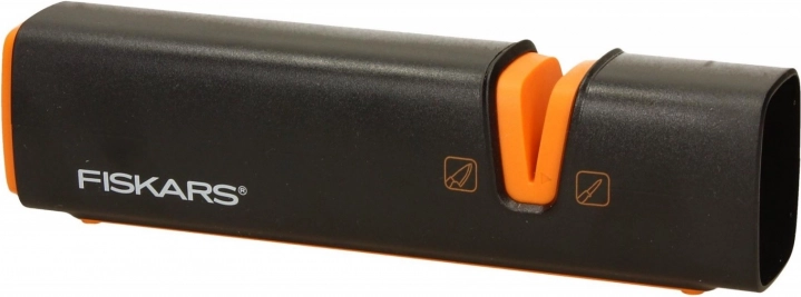 Hold dine køkkenknive i topform med den universelle FISKARS knivsliber. Enheden er designet til nem og sikker brug uden behov for strøm. De keramiske sten giver en glat og langvarigt skarp æg, mens den integrerede mekanisme sikrer den korrekte slibevinkel ved hver gennemtrækning.