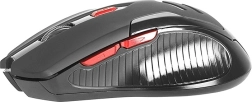 Det ergonomisk formede kabinet med skridsikker gummioverflade sikrer et behageligt greb, selv ved længere brug. Det moderne sort-røde design med skarpe linjer understreger det dynamiske look og passer perfekt til dit setup.