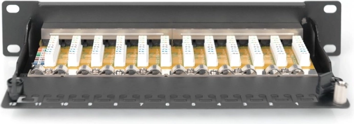 Dette 12-port 10" patchpanel er ideelt til mindre racks og applikationer, hvor høj transmissionskvalitet og ryddelig kabelhåndtering er påkrævet. Opfylder CAT6 S/FTP-specifikationen for stabile gigabit-overførsler og er fremstillet af robust stål for lang levetid.