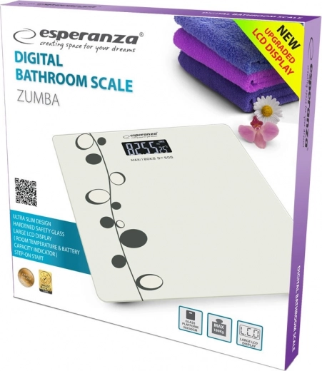 Hold styr på din vægt med ESPERANZA ZUMBA. Den ultratynde konstruktion med hærdet glas på 6 mm passer ind i ethvert badeværelse, mens det store og strømbesparende LCD-display sikrer fremragende læsbarhed. Højt præcise Strain Gauge-sensorer giver pålidelige resultater med nøjagtighed ned til 100 g.
