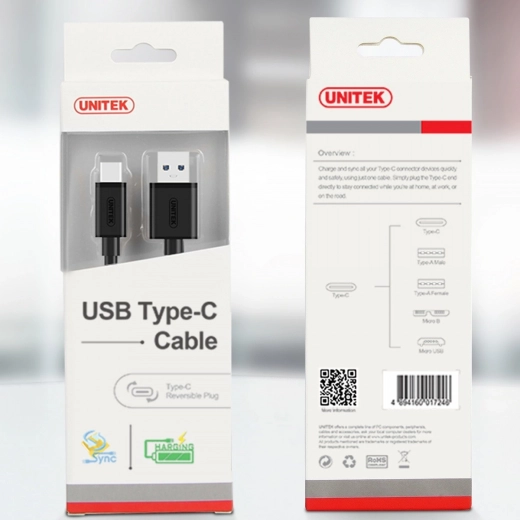 Universalkabel USB Type-C til USB 3.0 fra Unitek er den ideelle løsning til synkronisering og opladning af dine mobile enheder med USB Type-C-port, såsom tablets og smartphones.