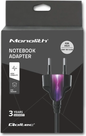 Pålidelig QOLTEC-netadapter til ASUS-bærbare med effekt på 65 W (19 V, 3,42 A) og stik 5,5 × 2,5 mm. Leverer stabil strømforsyning, høj effektivitet og omfattende beskyttelser. I pakken medfølger en rem til kabelorganisering.
