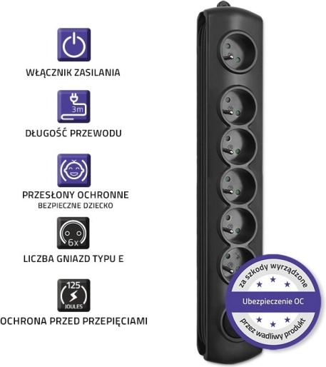 Den belyste fodafbryder Quick Switch gør det let og hurtigt at tænde eller slukke strømmen uden at bøje sig – lysindikatoren viser tydeligt, når tilsluttede enheder er strømførende. Din sikkerhed varetages af overspændingsbeskyttelse med varistor, børnesikringer i alle udtag og brandhæmmende PP kabinet. Producenten forbeholder sig ret til at ændre tekniske specifikationer.