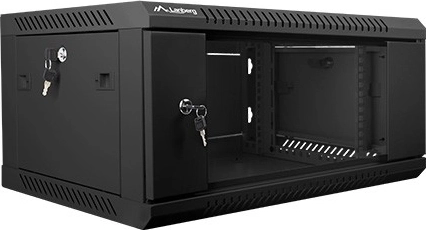 Dette vægmonterede 19" rackskab på 4U er et ideelt valg til små serverrum, kontorer og hjemmenetværk. Det giver sikker opbevaring af både aktive og passive komponenter såsom switches, patchpaneler eller optagere. Den låsbare glasfrontdør sikrer beskyttelse og samtidig visuel kontrol af den installerede teknik.