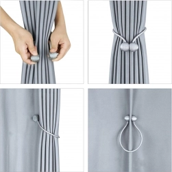 Praktiske magnetiske spænder til gardiner og forhæng i elegant sort. Takket være den stærke magnet holder de nemt selv tungere stoffer, mens de virker diskrete og stilfulde. I pakken er der 2 stk. til bekvem brug i par. Nemt at bruge, sikkert greb og moderne design til enhver indretning.