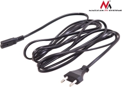 Praktisk C7-strømkabel (“otte-tal”) med europæisk stik, egnet til en bred vifte af enheder i hjemmet og på kontoret. Takket være den 3 meter lange ledning giver det bekvem tilslutning uden brug af forlængerledninger og sikrer stabil energioverførsel til dine enheder.