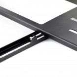 Beslaget er designet til sikker og æstetisk montering af tv og skærme på væg. Takket være den ekstra slanke profil holdes skærmen meget tæt på væggen, hvilket understreger et moderne interiør og sparer plads. Det integrerede vaterpas forenkler installationen, og sidekorrektion efter ophæng på vægpladen gør det muligt at finjustere skærmens position.