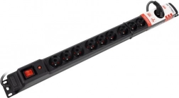 Professionel overspændingsbeskyttet forlænger til 19'' racks med 12 jordede stik, automatisk afbryder og overspændingsbeskyttelse. Ideel til vertikal montering i skabe, i mødelokaler og på produktionsborde – pålidelig strømdistribution med hurtig kontrol via central kontakt.