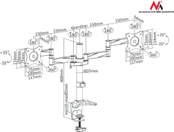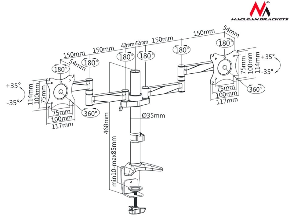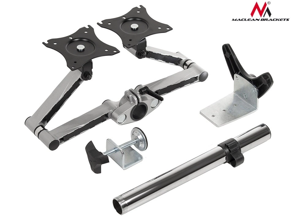 Stativet til to skærme fra Maclean tilbyder en universel monteringsløsning til skærme med en skærmstørrelse fra 13" til 27", så længe vægten ikke overstiger 8 kg. Stativet er velegnet til forskellige LCD- eller LED-skærme og tv og understøtter VESA-standarder.