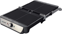 GRS701 tilbyder komfort i brug takket være justerbar temperatur, kontrollys og aftagelige plader for nem rengøring. Et køligt håndtag sikrer sikker betjening. Det elegante design i rustfrit stål passer ind i ethvert køkken, og de kompakte mål gør den nem at opbevare og tage med på farten.