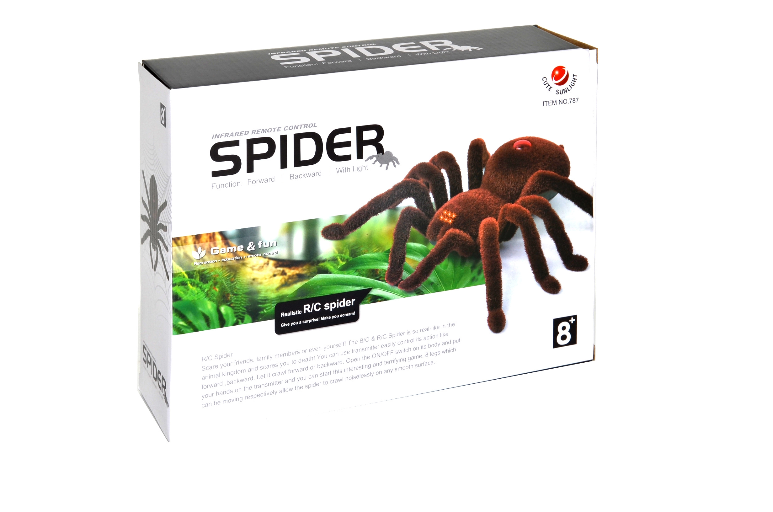 Tag kontrol over den hårede tarantel og få masser af sjov både inde og ude. Takket være det realistiske design og den flydende bevægelse fremad og til siderne ligner edderkoppen en levende. Øjnene lyser rødt, hvilket øger effekten ved leg i mørke.
