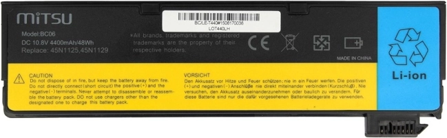 Leder du efter tryghed og ydeevne til din bærbare? MITSU-batteriet leverer stabil kapacitet på 4400 mAh, driftssikkerhed og er designet som en præcis erstatning til modellerne Lenovo ThinkPad T440, X240 og beslægtede varianter. Takket være omhyggeligt udvalgte klasse A-celler kan du regne med langsommere kapacitetsfald og konsekvent ydelse selv ved daglig brug.