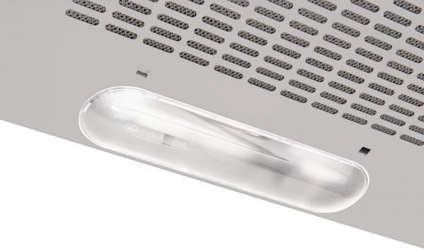Den lave profil og den hvide finish sparer plads og passer til de fleste køkkener. Et ideelt valg til mindre rum med mulighed for aftræk eller recirkulation.