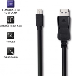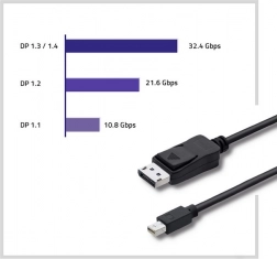 Takket være kvalitetsafskærmning og nikkelbelagte stik er signalet stabilt og modstandsdygtigt over for interferens. Standarden DisplayPort 1.1 understøtter opløsning op til 4K ved 30 Hz, i Full HD op til 144 Hz, samt 8 lydkanaler for rumlig lyd. Beskyttelsen DPCP sikrer sikker overførsel af beskyttet indhold.