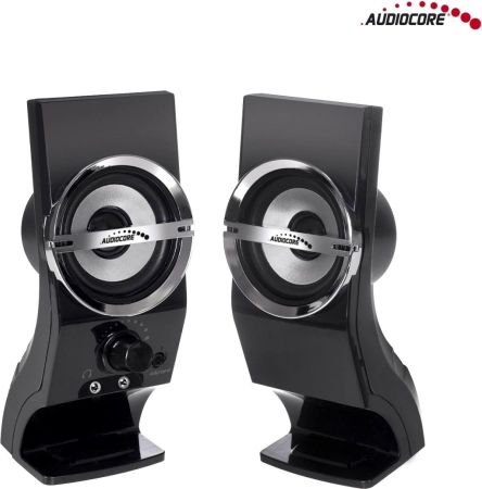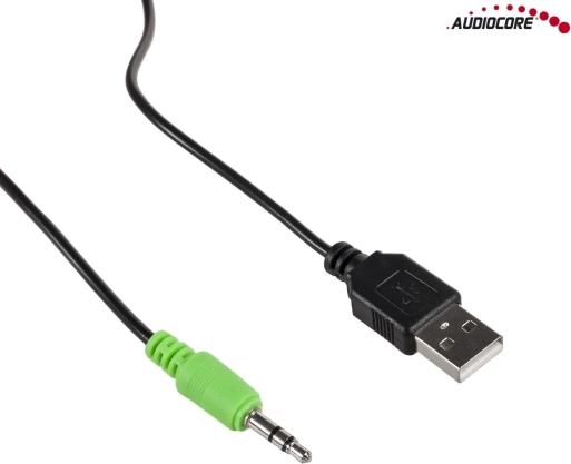 Kompakte stereohøjttalere AUDIOCORE AC805 med en samlet effekt på 6 W leverer ren og naturlig lyd til både bærbare og stationære computere. Strøm via USB og tilslutning med 3,5 mm jack sikrer nem brug. Elegant og robust design i sort, som passer perfekt til et moderne skrivebord.