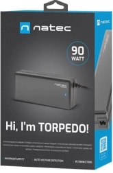 Den pålidelige universelle adapter NATEC Torpedo UNI-90 er ideel som erstatnings- eller rejseoplader til de fleste bærbare. Den tilbyder 90 W effekt, automatisk spændingsdetektion og et sæt på 8 udskiftelige stik for bred kompatibilitet. Flerniveaubeskyttelse mod overspænding, overophedning, kortslutning, overstrøm og overbelastning sikrer sikker opladning derhjemme og på farten.