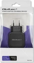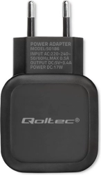 Qoltec vægoplader giver dig pålidelig strømforsyning til dine enheder i enhver situation. Med en effekt på 3.4A muliggør den samtidig opladning af to enheder ved at tilpasse spændingen til de tilsluttede enheder.