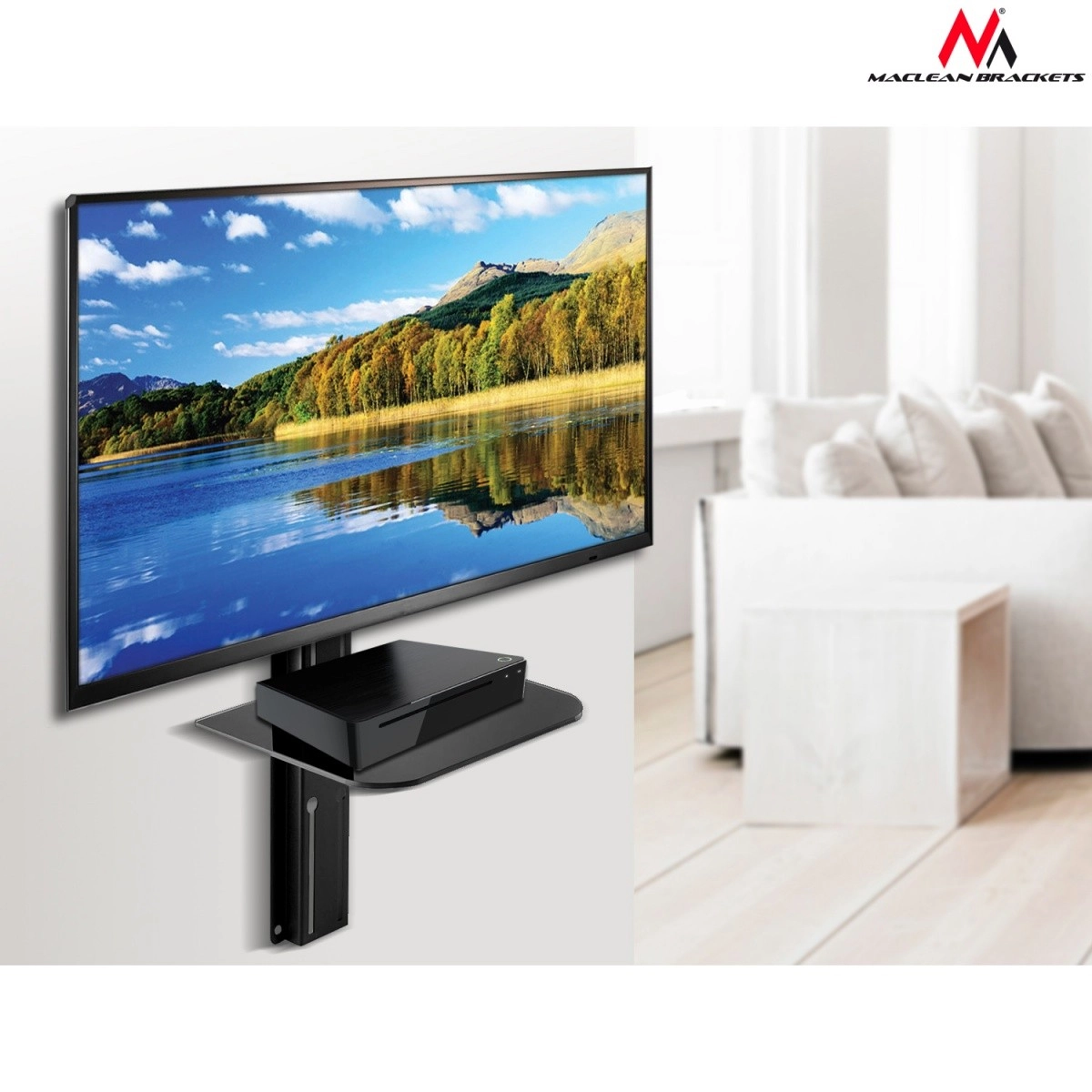 Det elegante og robuste MACLEAN-beslag monterer sikkert LCD-, LED- og plasmatelevisioner samt større skærme i intervallet 32–55". Takket være den brede vifte af understøttede VESA-standarder passer det nemt til de fleste tv- og skærmmærker. Den integrerede hylde under tv’et giver plads til DVD/Blu‑ray-afspiller, spillekonsol, set‑top-boks eller en mindre forstærker.