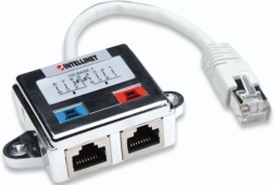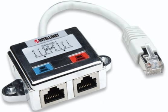 - Muliggør to RJ-45-porte over ét enkelt Cat5-kabel