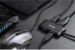USB-hub udvider din computer med 4 ekstra USB-porte til tilslutning af periferiudstyr som mus, tastatur eller eksterne harddiske. Tilbyder maksimal lade-strøm på 2,4 A pr. port ved brug af ekstern strømkilde (ikke inkluderet).