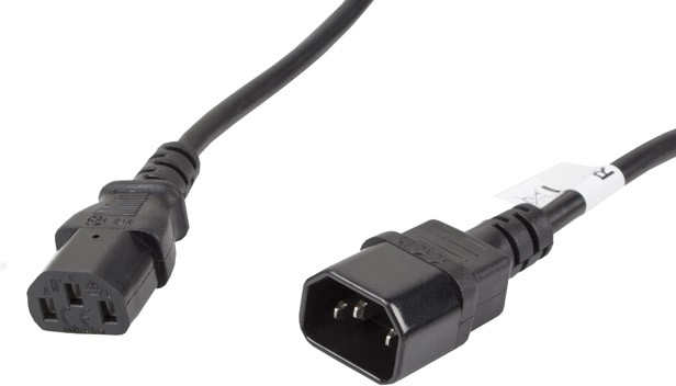 Standardkombinationen IEC 320 C13 (hun) og IEC 320 C14 (han) for nem tilslutning til strømforsyninger på pc'er, servere og UPS.