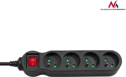 Strømskinne, forlængerledning, 4 udtag, med stik, sort, 5 m, Maclean Energy MCE182 2300W