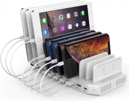 Opladningsstationen understøtter op til 10 enheder samtidigt med en udgangsstrøm på op til 2,4 A.