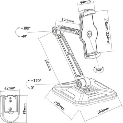 Universal skulderholder til tablets, som muliggør bekvem placering på skrivebord eller montering på væg. Kompatibel med de fleste tablets fra 4,7'' til 12,9'' og tilbyder nem justering af orientering og hældning.