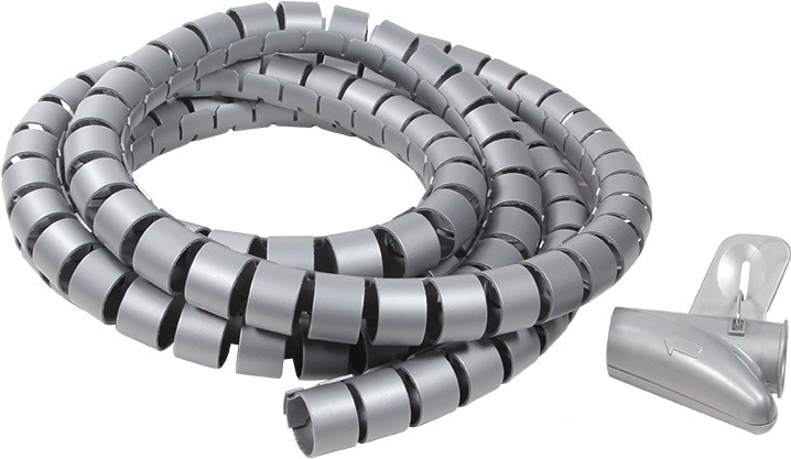 Den spiralformede kabelmanchet er ideel til organisering af strøm-, data- og AV-kabler derhjemme og på kontoret. Med en diameter på 25 mm rummer den et større bundt ledninger og tilpasser sig installationens form. Længden 2,5 m giver rigelig reserve til skriveborde, TV-vægge og fordelerskabe.