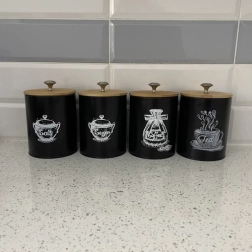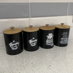 Dåserne kombinerer et moderne sort look med naturlige bambuslåg, der passer til ethvert køkken.