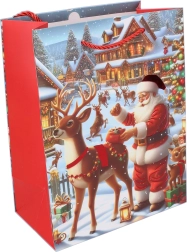 Gør indpakningen af julegaver nemmere med en elegant gavepose i størrelse L. Takket være det robuste materiale og de praktiske hanke kan den sikkert bære selv større og tungere pakker. De stilfulde julemotiver giver enhver gave et festligt udtryk.