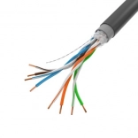 Robust udendørs UTP netværkskabel i kategori 5e med længde 305 m og massive kobberledere sikrer stabil datatransmission op til 100 MHz. Gel-fyldt konstruktion til beskyttelse mod fugt, 100% kobber (CU), AWG 24 – massiv leder, robust sort kappe og meter-mærkning for nem installation.