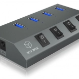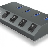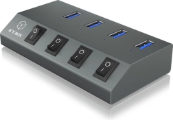 Hver port har en separat afbryder, så du nemt kan styre tilsluttede enheder uden at afbryde kabler. Ved brug af den medfølgende strømforsyning 5 V/4 A fungerer hubben som en aktiv oplader med understøttelse af USB Battery Charging 1.2 (BC 1.2) – ideel til hurtig opladning af telefoner og tablets.