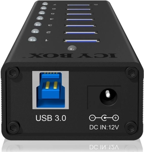 Den aktive USB-hub ICY BOX forvandler én port på din computer til syv USB 3.0, så du nemt kan tilslutte eksterne drev, tastaturer, mus, kortlæsere eller printere. Takket være USB 3.0-standarden (5 Gbit/s) får du væsentligt højere hastigheder end USB 2.0 samt fuld bagudkompatibilitet med ældre enheder.