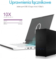 Nyd overførselshastigheder op til 5 Gb/s via USB 3.0 samt mulighed for tilslutning via eSATA for maksimal kompatibilitet med både PC og Mac.