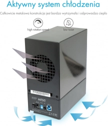 Nem udskiftning af diske uden besværlig demontering og en 60 mm blæser for stabile temperaturer og længere levetid for HDD.