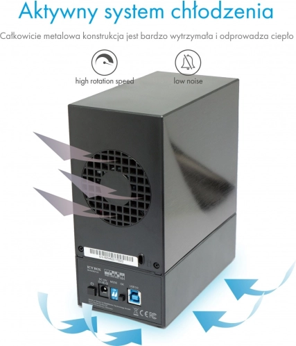USB 3.0-grænsefladen med overførselshastighed op til 5 Gb/s sikrer hurtig adgang til filer, og der er også en eSATA-port for fleksibel tilslutning til både PC og Mac. Konstruktionen med EasySwap gør det let at skifte diske uden langvarig demontering, og den integrerede 6 cm blæser køler aktivt de indsatte HDD’er for længere levetid og stabil drift.
