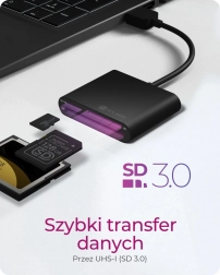 Tilslut blot kortlæseren IB‑CR301‑U3 til en ledig USB 3.0-port og få øjeblikkelig adgang til data fra dine hukommelseskort. Den høje båndbredde på op til 5 Gbit/s sikrer markant hurtigere overførsler end ældre standarder og problemfri arbejde med store filer.