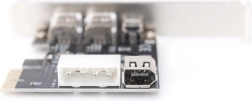 To eksterne porte muliggør øjeblikkelig tilslutning af periferiudstyr, mens den interne port kan føres til frontpanelet eller bruges til interne FireWire-enheder. Et integreret 4-pin strømstik leverer ekstra effekt til portene for strømhungrende periferiudstyr.