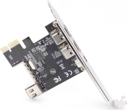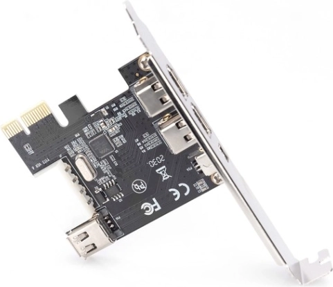 - PCIe FireWire-controller, standard- og low-profile beslag