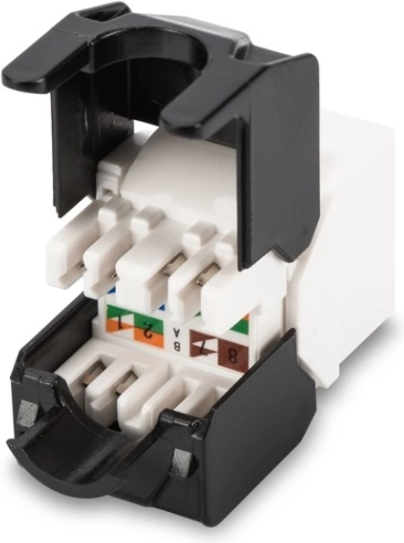 DIGITUS CAT 5e keystone-modul er et ideelt valg til både hjemme- og virksomhedsnetværk. Den uskærmede UTP-udførelse sikrer nem installation og pålidelig transmission i almindelige netværksmiljøer. Takket være den værktøjsfri mekanisme er det nok at indsætte kablet i de farvekodede LSA-klemmer og klikke det på plads.
