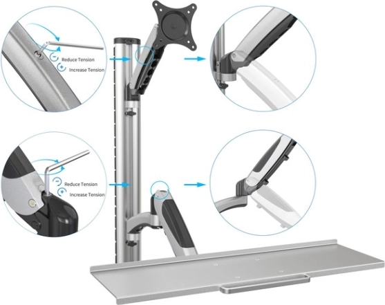 Perfekt til pladsbesparelse og forbedret ergonomi takket være kombineret understøttelse af både skærm og tastatur.