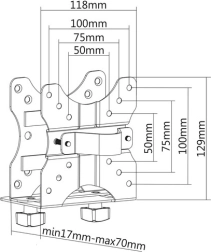 Det kan også tilsluttes fra undersiden af skrivebordsplader eller andre møbler. Denne holder er velegnet til mini-computere med en tykkelse på 17 til 70 mm og en vægt på op til 5 kg.