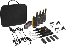 T82 Extreme Quad Pack er designet til teams og familier, der har brug for pålidelig kommunikation under krævende forhold. Walkie-talkierne opfylder IPx4 og klarer derfor regn og stænk. Det diskrete display lyser kun, når det er nødvendigt, hvilket gør betjening og statuskontrol lettere. Takket være hurtig parring kan du opsætte gruppeforbindelser på få sekunder.