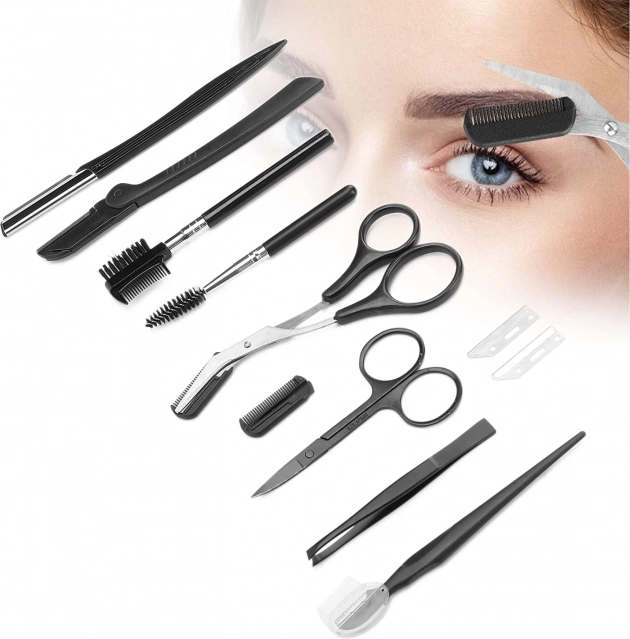 Sæt med 11 professionelle værktøjer til pleje af øjenbryn og vipper er den ideelle løsning til deres pleje og styling. Det giver universel anvendelse til påføring af mascara, kæmning af vipper (inklusive kunstige), klipning af øjenbryn og andre procedurer, såsom fjernelse af mascarester ved afrensning.