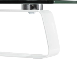 Bordpladen af hærdet glas med en tykkelse på 5 mm står på en robust metalbase. Konstruktionen er designet til stabilitet og sikker belastning op til 20 kg, så den uden problemer bærer de fleste skærme, bærbare og mindre printere. Under standeren opstår der praktisk plads til opbevaring af tastatur, mus eller notesbøger, hvilket hjælper med at holde skrivebordet ryddeligt.