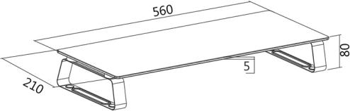 Målene 560 × 210 mm giver rigelig plads til en monitor eller bærbar og løfter skærmen til en behagelig øjenhøjde.