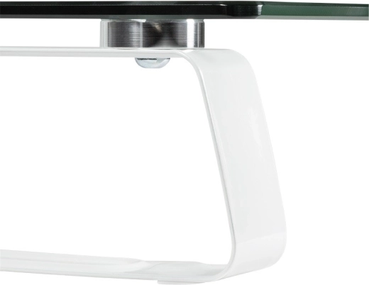 Gennemsigtigt 5 mm glas med minimalistiske linjer gør visuelt skrivebordet lettere og skaber samtidig plads under standeren til tastatur eller dokumenter.